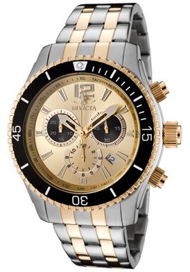 - Chronograph functions with 60 second and 30 minute black subdials and 12 hour gold-tone subdial; date function
